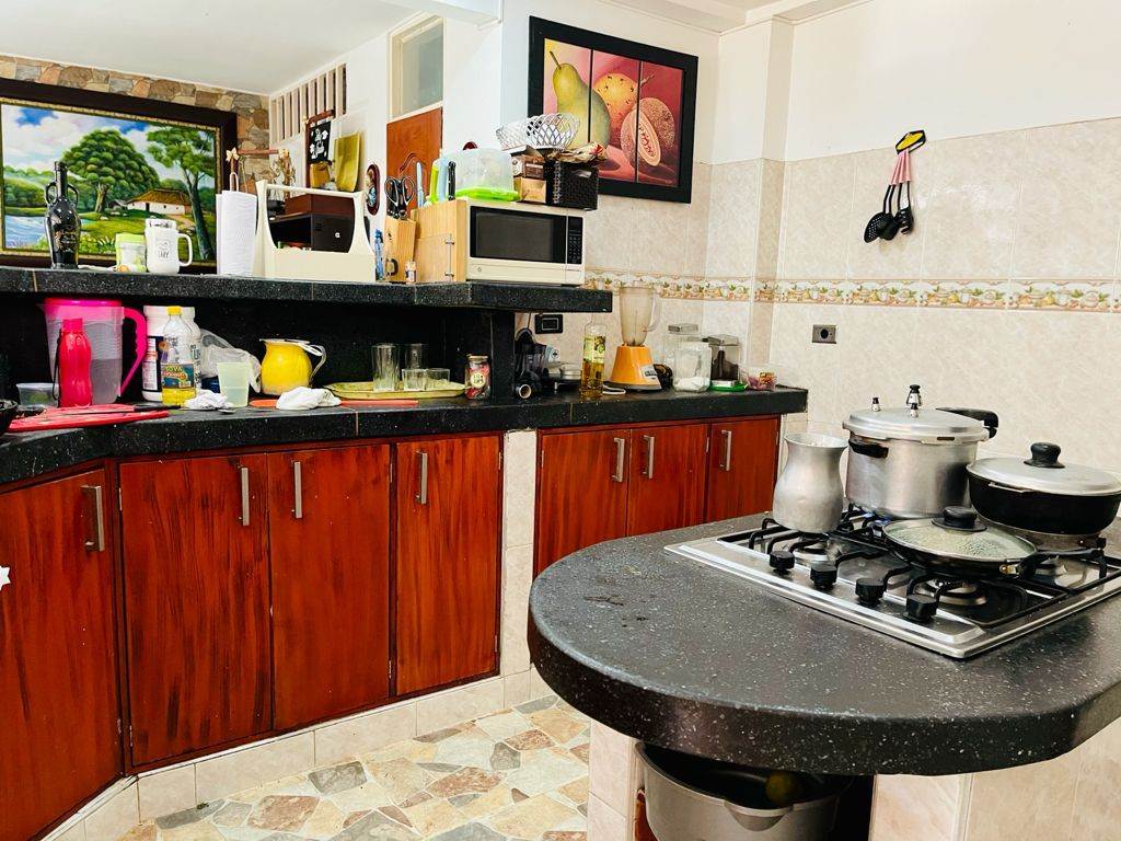 Casa de 2 pisos, área de 180m2, estrato 3, enrejada, techada, tanque de agua, cuarto de gimnasio, lamparas parte exterior, consta de 1er piso: sala, comedor, estar de tv, baño social con ducha, cocina americana integral, patio de ropas, zona de lavandería, garaje cubierto, 1 alcoba con baño amplia y closet metálico, estudio,biblioteca, 2do piso: 3 alcobas, 3 closet en metálicos, 2 baños (1 privado),2 a.a, cortinas persianas, pisos en cerámica., techo en driwall.